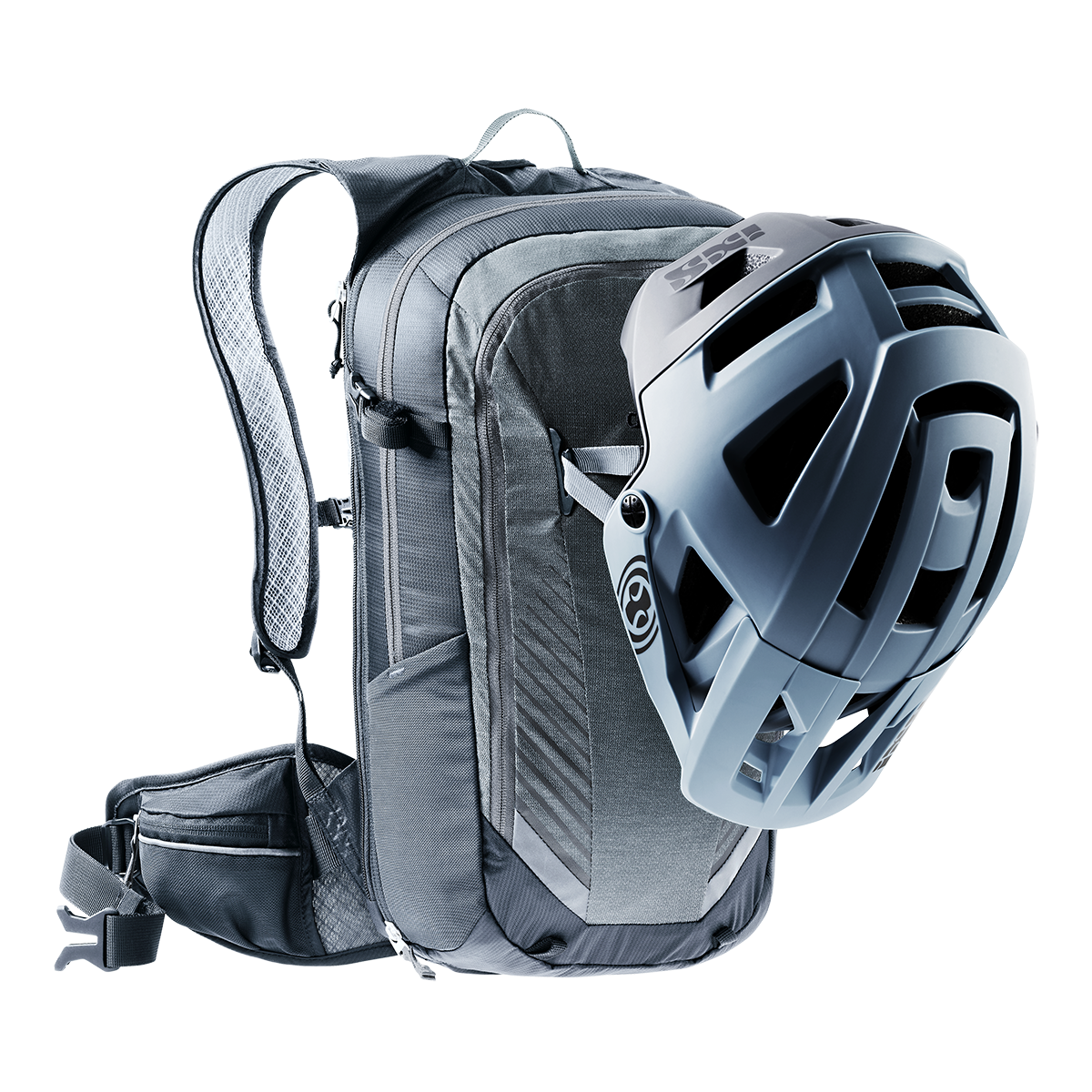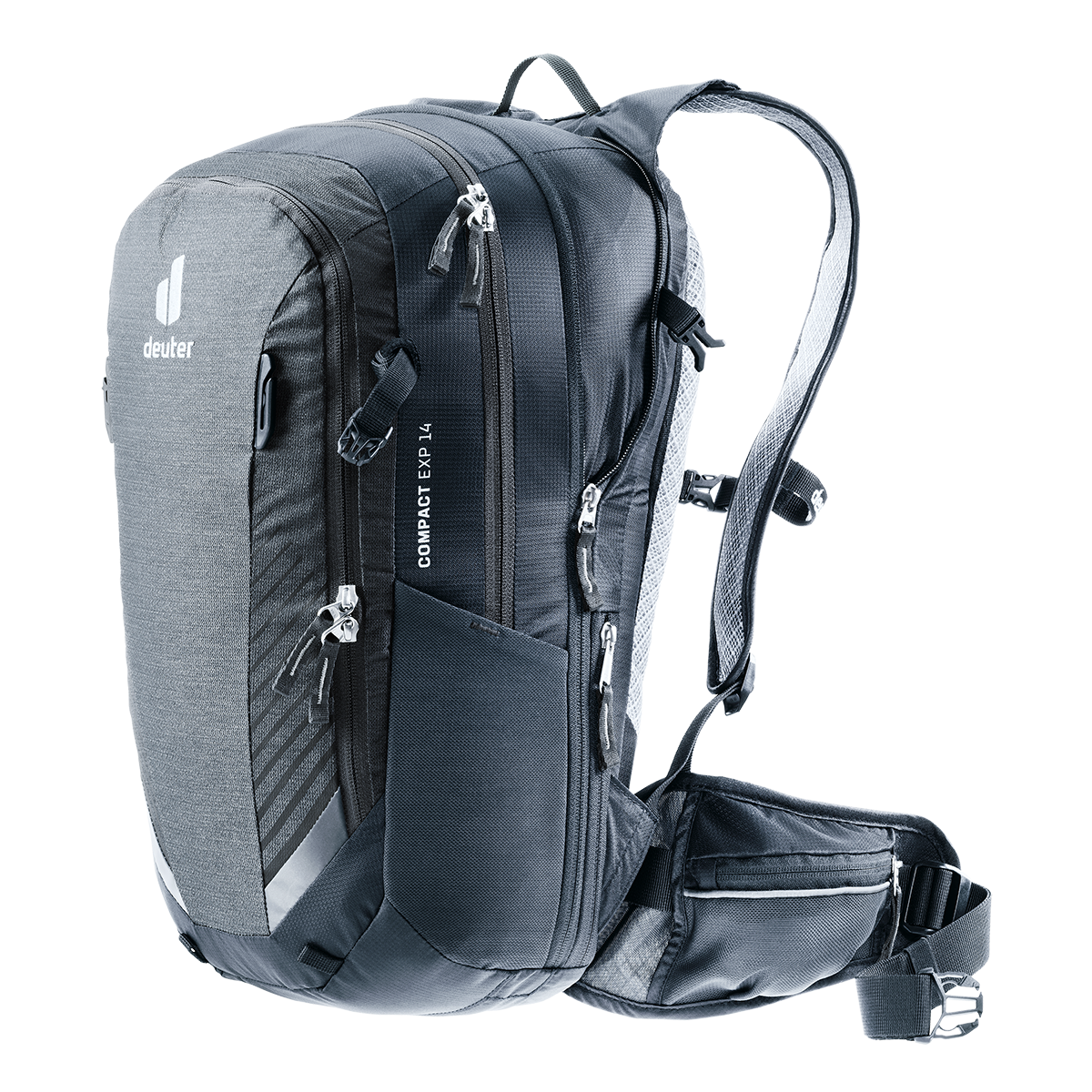 Thanks to the AIRSTRIPES back system, deuter’s COMPACT EXP 14 backpack fits closely to your back on rough trails, too. A stow-away protector holder offers more space to you. The rain cover compartment contains two straps that allow for attaching the protectors to the lower part of the backpack in no time.