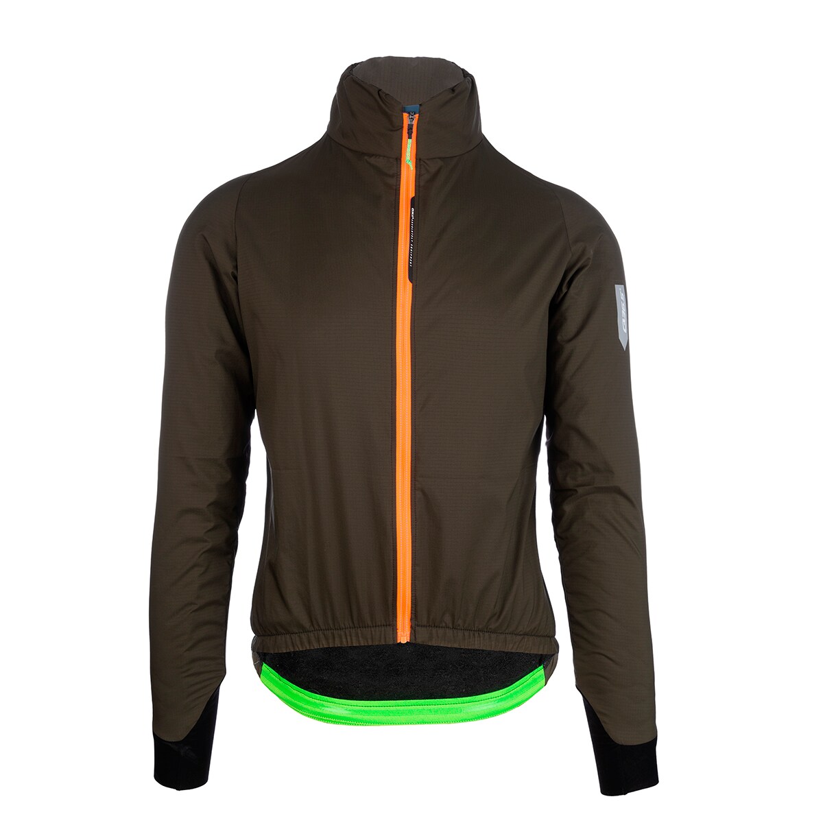 An additional collar that is attached to the inside of the first collar. This second collar is made from soft, elastic fleece and snuggles directly against the neck. The collar provides the body with hermetic protection from the cold air that often reaches the back of the neck. So this “Hermetic Collar System” provides significantly better protection than the traditional one-layer collars of regular cycling jackets.